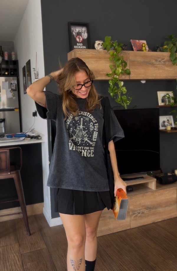 Remera oversize de algodón, con proceso de pre lavado, estampada en DTF con la imagen de la saga empíreo ( Alas de sangre ). Tela de excelente calidad, con cuello semi alto. No encoge ni deforma y viene desde el talle S al XL.