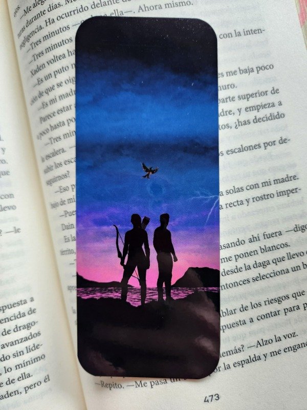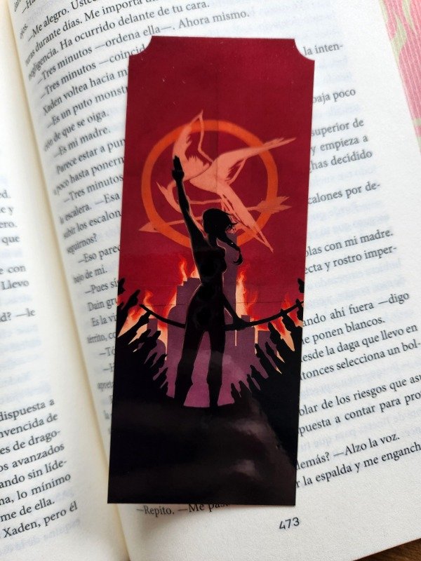 Pack de 4 señaladores surtidos de "Los juegos del hambre". Con terminaciones en los extremos y de material resistente al agua.