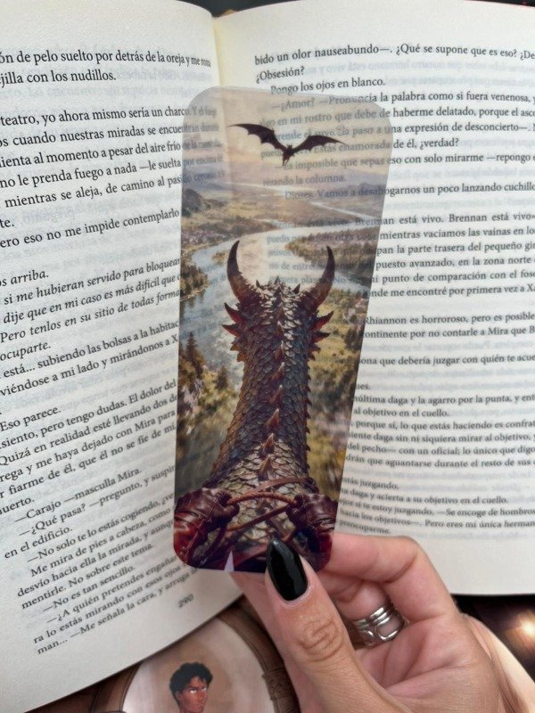 Señalador de material translúcido y plastificado, con diseño de un libro con anteojos y de fondo un disco de Vinilo.